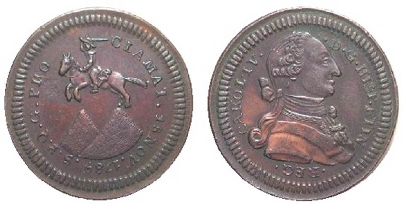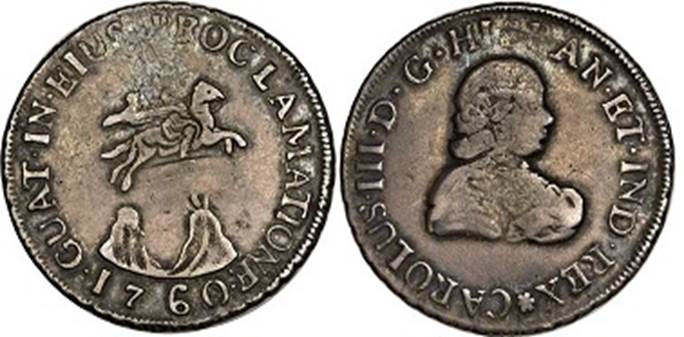 1790, se acuñan monedas con el busto de Carlos III y la leyenda de